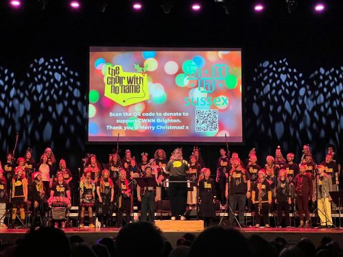 The Choir with No Name Brighton, a choir for people who have experienced homelessness and marginalisation, returned to the Brighton Dome last night for their annual Big Christmas Singalong. The event has become a staple in many local people’s Christmas celebrations as it never fails to uplift and spread festive cheer.